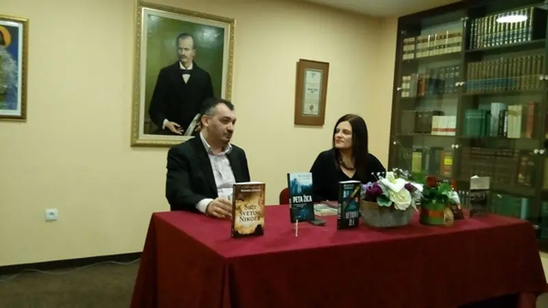 Gosta je najavila bibliotekarka Vesna Proković. Sa piscem iz Niša razgovarala je Danijela Vulićević, direktorka lapovačke biblioteke. Dotakli su se najznačajnijih predstavnica dinastije Obrenović i njihovog uticaja na emancipaciju srpskih žena, hrabrih i vrednih žena sa obe strane Save, buntovnica, grešnica, umetnica i žena koje su bile žrtve porodičnog nasilja, i neminovno njihovih ljubavi, snova, ambicija i grešaka. Posetioci su se uključili u razgovor i svojim komentarima začinili jedan uspešan književni program.