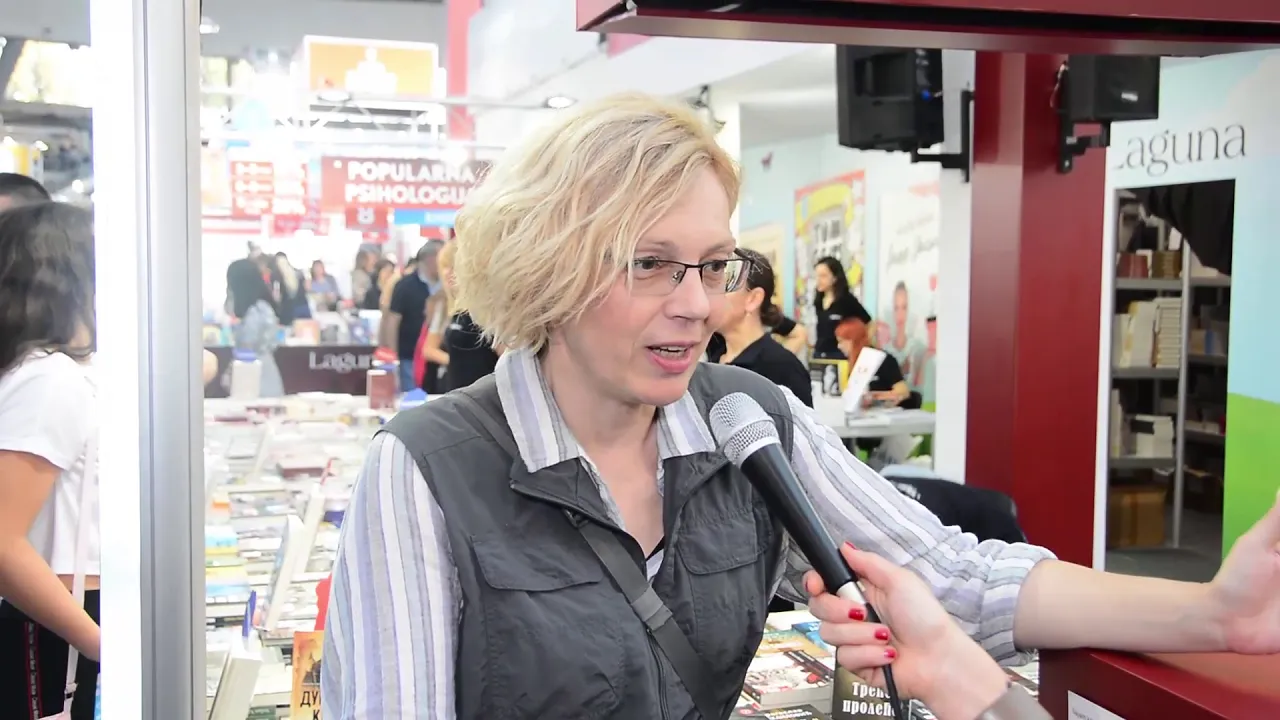Od 13 sati sa svojim mladim čitaocima družila se Aleksandra Filipović, autorka romana „O krilima i čudima“. Podelila je sa nama svoje utiske: „Bilo je fenomenalno. Ja na Sajmu knjiga uvek uživam, jer mnogo više volim papirna izdanja nego digitalna. Volim da mirišem knjige, da čujem kako šuškaju.“