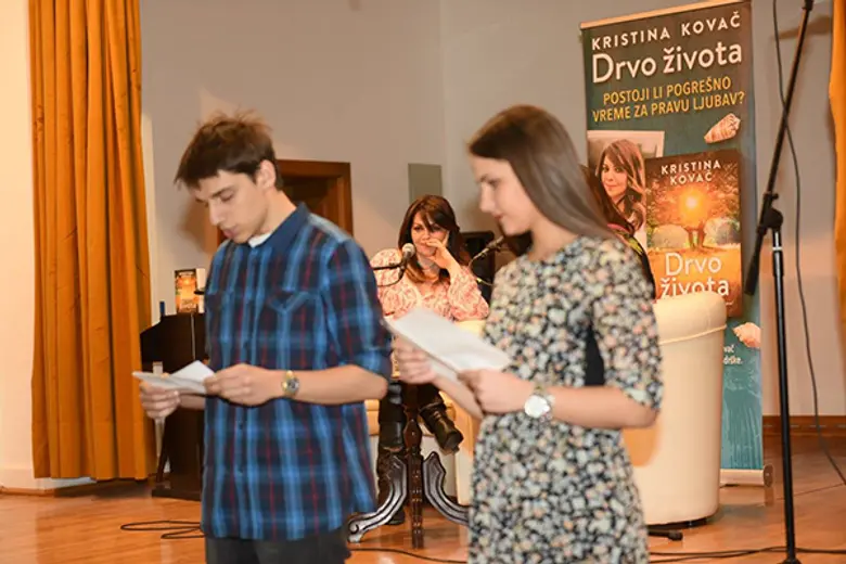 Moderatorka večeri je bila Maja Veljić, profesorka italijanskog jezika i književnosti. Mladi gimnazijalci su čitali odlomke iz romana „Drvo života“.