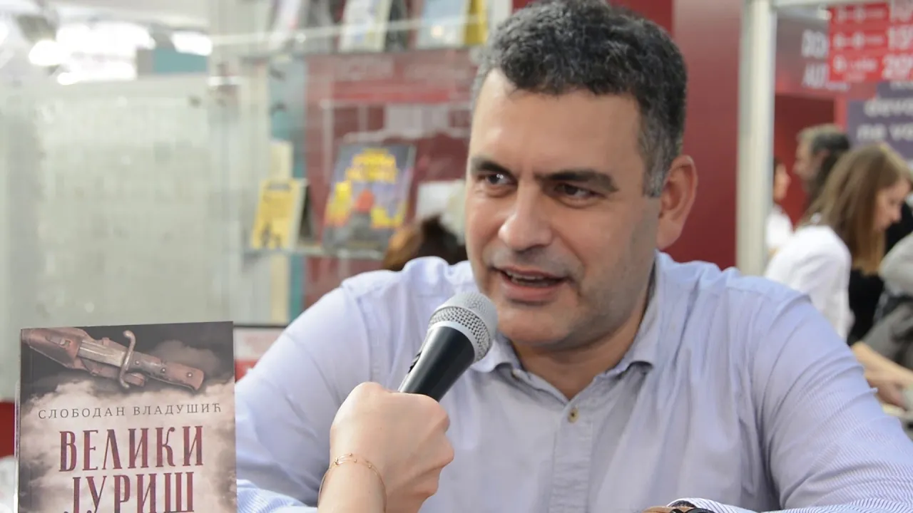 „Veliki juriš“, novi roman Slobodana Vladušića, do sada je privukao veliku pažnju čitalaca. Autor je na štandu Lagune gostovao i potpisivao svoje romane u podne, a primetili smo i veliki broj mlađih čitalaca koje zanima Vladušićeva interpretacija teme Prvog svetskog rata. Zamolili smo ga da prokomentariše ovo naše zapažanje i objasni nam šta to u njegovom novom romanu privlači raznoliku publiku: