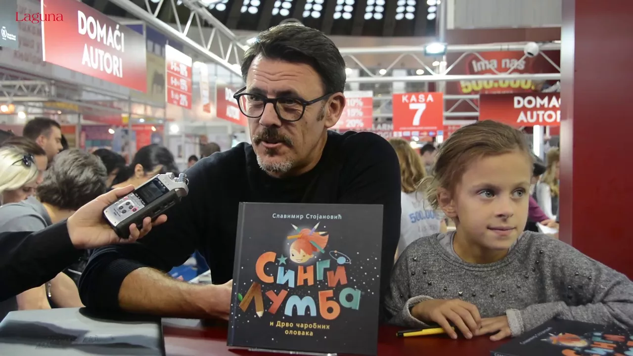 Za njim je na štandu gostovao i potpisivao primerke knjiga Ljubivoje Ršumović. Osmeh i dirljivo prijateljstvo sa decom Ršum nesebično deli sa svojom publikom. Njegova bajka, koja se može čitati i kao basna, kako nam je autor rekao, „Šumkula u škripcu“ danas je ovečana i nagradom žirija Sajma knjiga za najlepšu dečju knjigu.