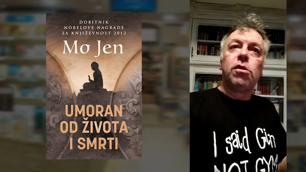 Druga je knjiga jednog Kineza. Vidimo na koji način je ovaj narod veličanstveno ušao ukoštac sa ovim neviđenim virusom koji je napao celu planetu. Knjiga Mo Jena ’Umoran od života i smrti’ pokazuje ne samo taj religiozno-filozofski kontinuitet kineskog naroda već 4500 godina već i jednu visprenu duhovitost autora i garantujem da je kojim slučajem rođen u Sarajevu šezdesetih godina prošlog veka, ne da bi bio član ’Top liste nadrealista’, nego bi bio njen vođa.