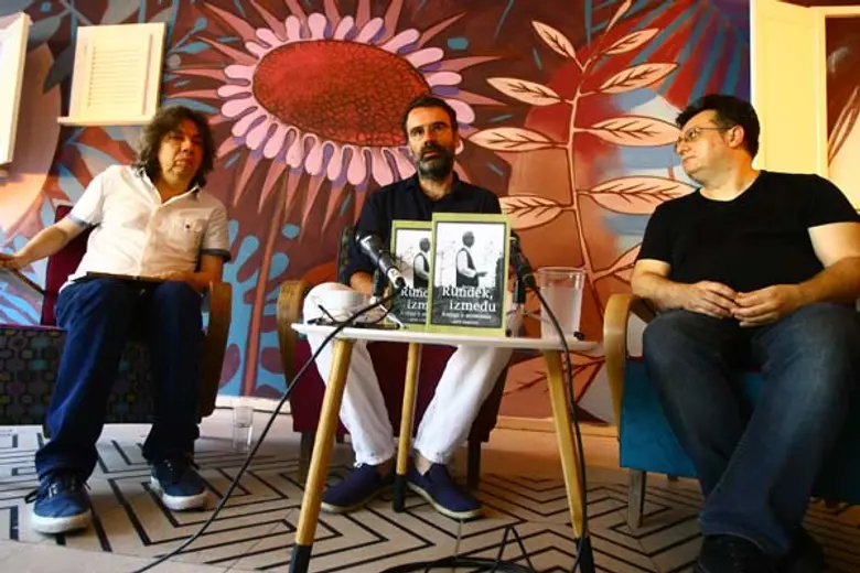 U petak, 24. juna od 18 časova u Amfiteatru DKSG predstavljena je knjiga „Rundek, između – knjiga o pesmama“ koju je napisao Ante Perković, muzičar, publicista i glumac iz Zagreba. Knjiga se bavi Rundekovim tekstovima, stvaralaštvom i uticajima, na veoma zanimljiv način – kroz intimno dopisivanje sa Darkom Rundekom, a prisutni su i glasovi njegovih najbližih saradnika… O knjizi „Rundek, između“ govorili su rok kritičar Dragan Ambrozić, autor Ante Perković i Zoran Penevski, urednik u Laguni (na slici).
