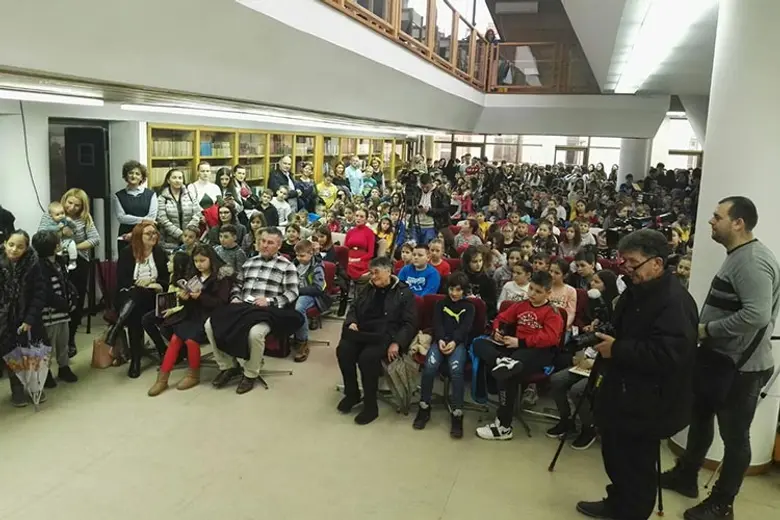 Oko 400 prisutnih među kojima je najviše bilo dece dočekali su slavnog pesnika ovacijama, a on im je uzvratio fazonima i forama koje decenijama zabavljaju, nasmejavaju i podučavaju mlade generacije.
