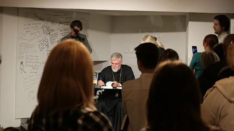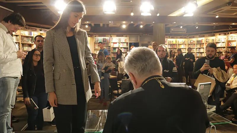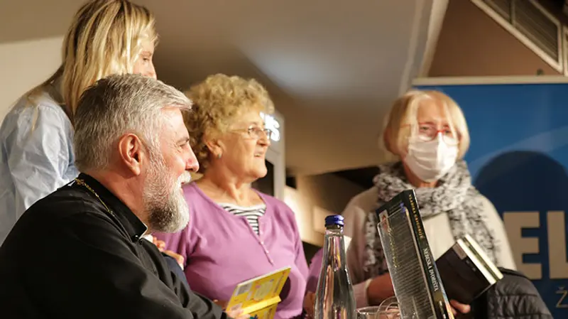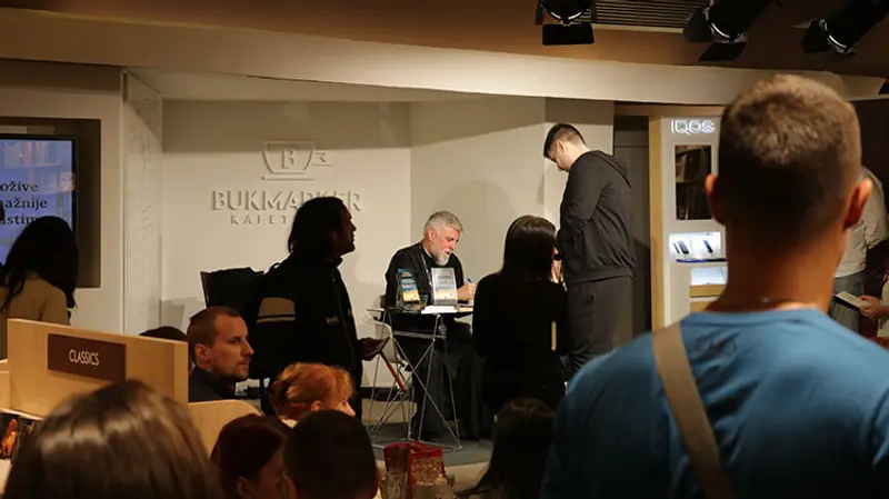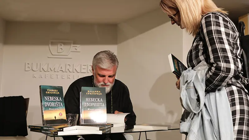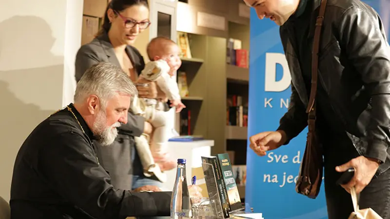Vladika je sa istom srdačnošću potpisivao svoje knjige, slikao se sa čitaocima, upućivao mudre reči tokom cele večeri.
