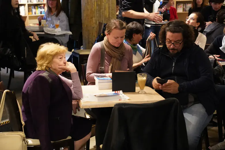 Naša proslavljena glumica Branka Petrić obratila se Dinu i prisutnima u želji da istakne sjajan prevod knjige za koji je zaslužna Dragana Marković.