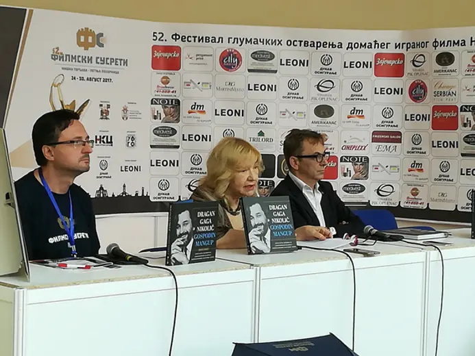 Urednica je govorila o zapaženim ulogama Dragana Nikolića kao glumca u pozorištu, na filmu, kao glumca u ulozi voditelja, navodeći razmišljanja, sećanja, zapažanja raznovrsnih umetnika i novinara koji su svoje tekstove o Gagi uobličili u monografiji pod naslovom „Gospodin mangup“.