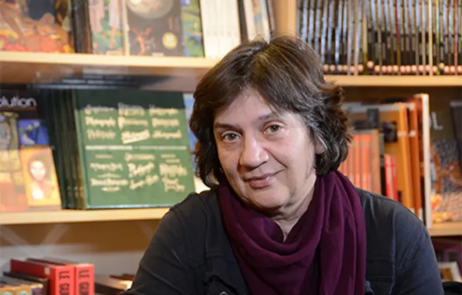 Ivana Dimić (Beograd, 1957), diplomirani dramaturg, autor je brojnih kratkih priča, drama, dramatizacija i TV scenarija. Osim toga, prevodi sa engleskog i francuskog jezika i radi kao dramaturg u beogradskim pozorištima. Obavljala je funkcije pomoćnika ministra za kulturu, direktora drame Narodnog pozorišta i direktora Ateljea 212. Član je Srpskog književnog društva od 2001, a od 2005. ima status istaknutog umetnika. Objavljene knjige priča: Crna zelen (1995), Mahorka, mastilo i muž (1998), Uzimanje vremena (2001), Ima li koga? (2006), Popis imovine (2009). Izvedene drame: Pred ogledalom (Atelje 212, 1986), Pepeljuga (Malo pozorište „Duško Radović“, 1989), Beli ugao (objavljena u časopisu Književnost 1998), Golje (Pozorište na Terazijama, 2001), Zmajovini pangalozi (Pozorište „Boško Buha“, 2007). Izvedene dramatizacije: Mamac – prema romanima D. Albaharija (Narodno pozorište, 1998), Cigani lete u nebo – prema pripoveci M. Gorkog (Pozorište na Terazijama, 2004), Petar Pan – prema romanu M. Barija (Pozorište „Boško Buha“, 2010). Prevodi: drame sa engleskog M. Frejna, H. Pintera, N. Kauarda, B. Eltona, R. Munro, M. Džons, Maknelija i T. Stoparda; romani sa engleskog A. Makola Smita Prva damska detektivska agencija i Žirafine suze, kao i Umreti u Čikagu N. Tešić; drame sa francuskog V. Sardua, M. Marivoa, R. Kusa, E. Joneska, J. Reze, V. Lanua. Nagrade: Nagrada Tiba festivala za najbolji dramski tekst za Zmajovine pangaloze (2010), Zlatni beočug za trajni doprinos kulturi (2011), godišnja nagrada za predstave Henri Šesti i Ženski orkestar (2012). Živi i radi u Beogradu. Foto: vreme.com