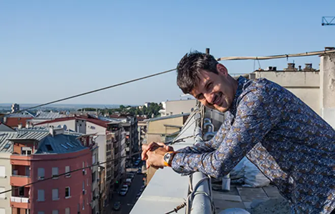 Marko Popović (1978, Beograd), završio je dramaturgiju na FDU i školu filmske režije u Njujorku. Autor je i scenarista TV serija Jedini izlaz, Tajne vinove loze i Poziv, dok je po njegovom romanu Jedan pogrešan korak snimljena TV serija Nemirni. Trenutno razvija regionalnu TV seriju Južni tok i piše novi roman. Foto: Marko Todorović