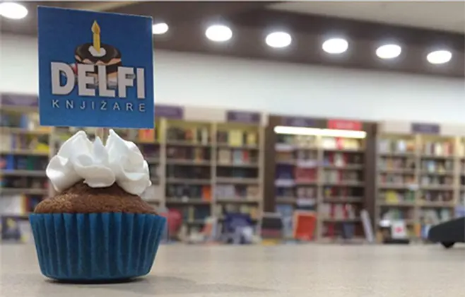 Marko Popović na proslavi prvog rođendana knjižare Delfi u Zrenjaninu